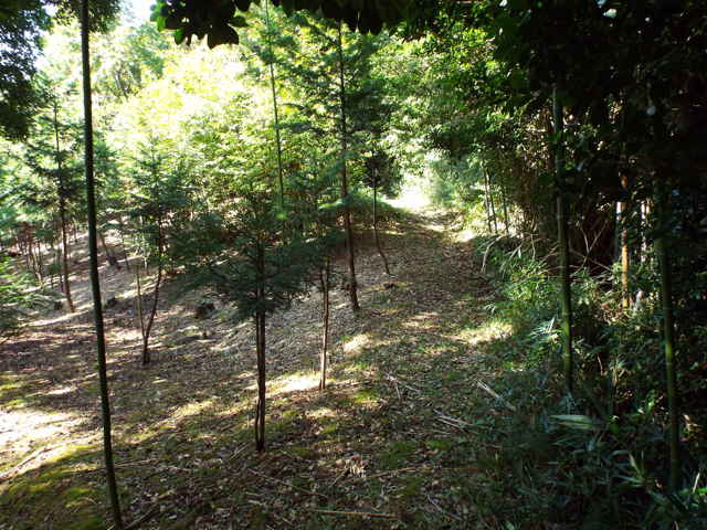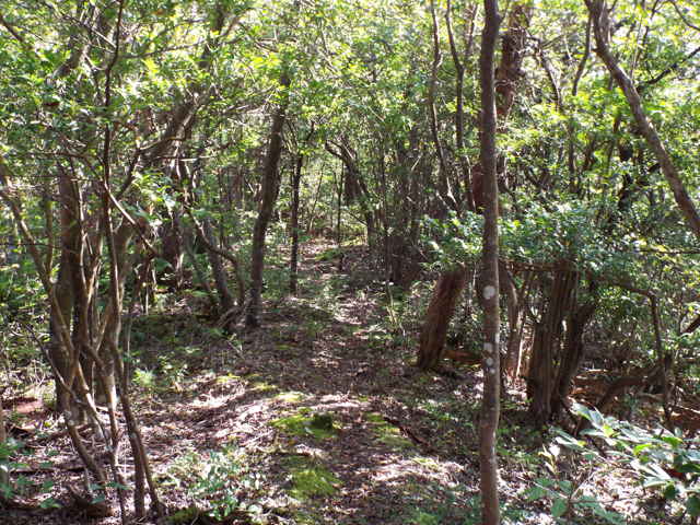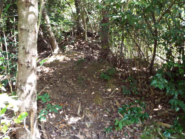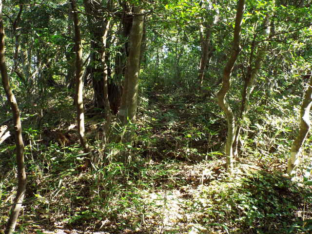 | 鹿島町 14:09 鞍部へ帰り、右の斜面を下る。 | 14:11 細いV字形の径を下がる。 |