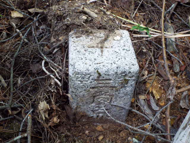 | 西生馬町 13:42 倒木の下に三角点が見える。 | 四等三角点(小谷 190.92m) | 13:52 分岐へ帰り、巡視路を下がる。 |