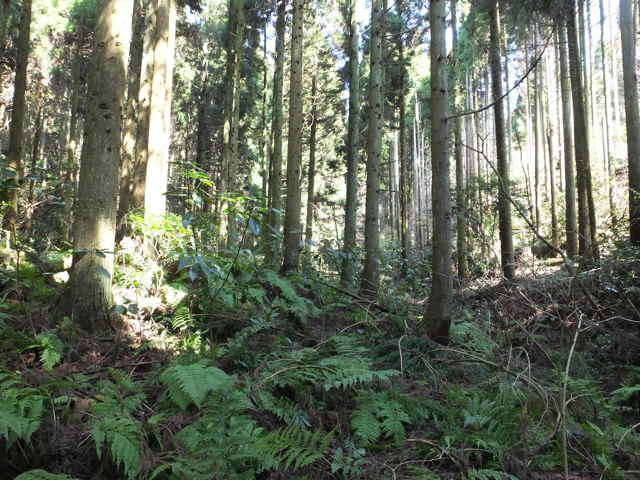 | 東持田町 12:21 右斜面の林の向こうに林道が見える。 |