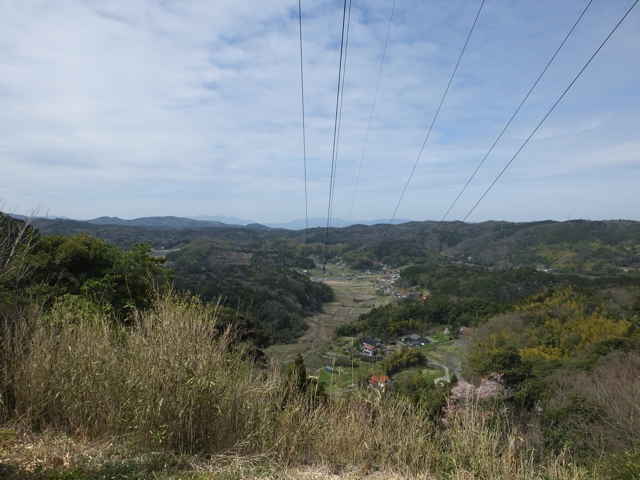 | 東忌部町から八雲町平原へ向かって送電線鉄塔が並んでいるので、ここにあるだろう巡視路を歩いてみることにしました。 東忌部町大谷地区の道路を歩いてみると、民家の入口に巡視路案内標識が立っていました。民家の敷地を通り抜けるようなので、挨拶してからなどと考えていましたが、人影が見えないので、民家の前を通って山へ向かいました。 山へ入るといきなり急斜面の径で、息を切らしながら上がりました。急斜面を上がった左のピークに鉄塔No.18がありました。鉄塔あるピークからは忌部地区の集落や、山の向こうの宍道湖を見渡すことができました。 斜面をトラバースして巡視路は続き、やがて急斜面をつづら折れに上がると、鉄塔No.17に到着します。鉄塔のあるピークから急斜面を下ると、竹林内をトラバースして、巡視路は左へカーブします。右へも尾根を下る踏み跡があるので、麓の集落へ下りられるかも知れません。 少し進むと径が左右に分かれており、左への径を確かめることにしました。しばらくは歩きやすい径が続いていますが、やがて踏み跡は藪の中に消えてしまい、元へ引き返しました。 分岐へ引き返し、右へ径を進むと巡視路の案内標識があり、すぐに鉄塔No.16につきました。鉄塔からは電線の伸びる方向に径があり、やや笹が伸びていたりしますが、林内を通り、竹林を抜けると、広い作業道に出会いました。作業道を右へ進み、左へ細い径を分岐すると、巡視路案内標識があります。標識を左折すると、また広い作業道があり、下がっていくと、やがて八雲町平原の市道に出てきました。 |