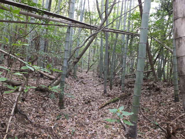 | 東忌部町 11:45 右折し、斜面をトラバースする。 | 11:47 竹林内を進む。 | 11:50 分岐を左折する。 |
