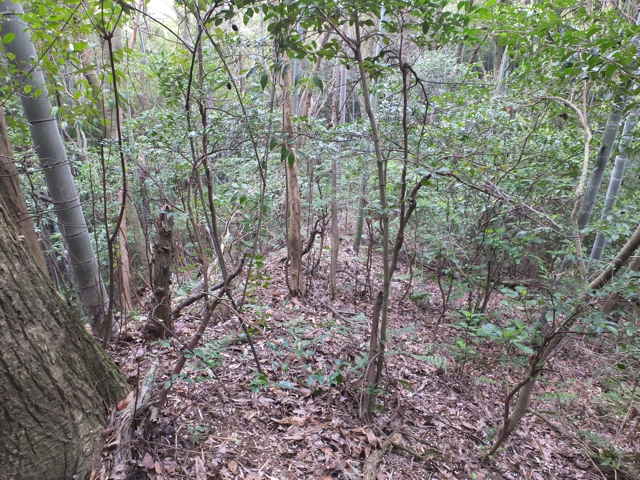 | 乃白町 15:01 14:13の分岐へ帰り、左折する。 | 15:04 竹林内に踏み跡がある。 | 15:08 踏み跡が見えないが尾根に向かう。 |