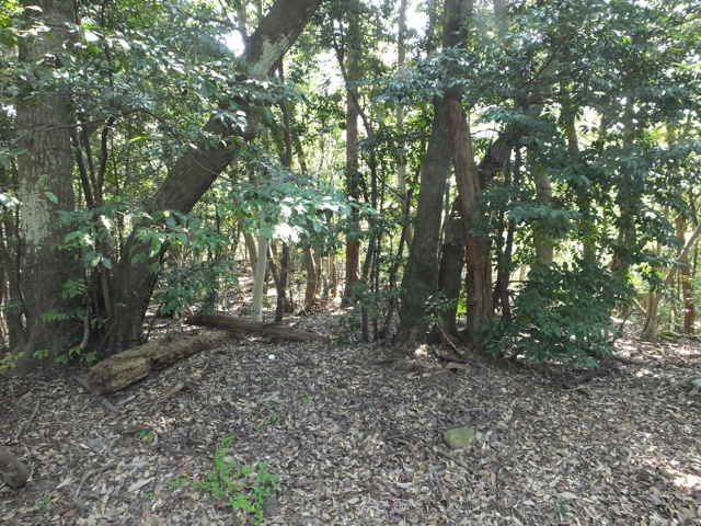 | 旧版地形図にある玉造の玉作湯神社から山を越え、現在の林道一崎柳原線と交差し、西忌部町堂廻へ至る旧道を歩いてみようと思いました。 山の上にある金刀比羅宮への径の途中から東へ向かって山を越えるようですが、最初は神社への径からの分岐がわかりませんでした。神社からたどれないかと、神社の後ろの林内へ入ると、U字形になった踏み跡が、東へ続いていました。4分ほど踏み跡をたどると、左右に続く径に出会いました。左の径に石段があるように見えるので、左へ上がってみました。1分ほど径を上がると小さな溜池があり、ぬかるんだ径が下がっていました。径は西へ曲がり2分ほど行くと、神社へ向かった時(9:45)の十字路に合流しました。 神社裏から下りた場所へ引き返す途中で、北へ曲がるところに東への分岐があることがわかりました。神社裏から下りたところへ引き返し、東へ伸びる径を確認しましたが、5分ほど行くと藪になってしまったので引き返しました。10:35の分岐が旧道になるだろうと、神社への径に再度引き返し、確認することにしました。 |