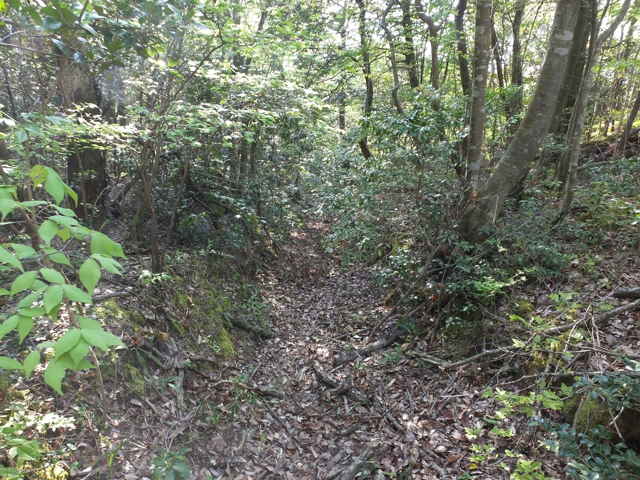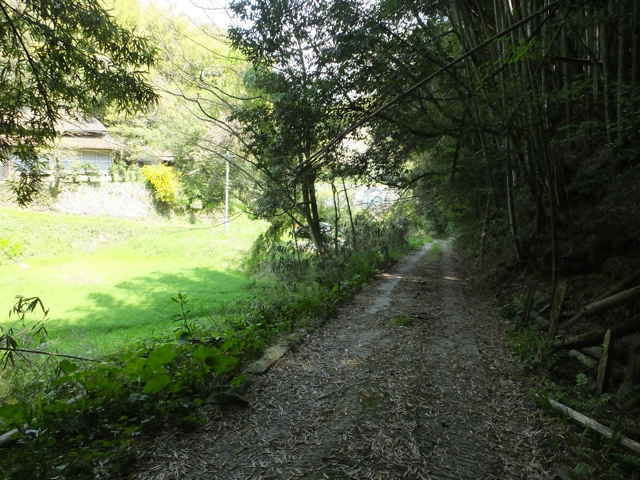 | 西忌部町一崎 14:16 民家への入り口を上がる。 | 14:17 民家の手前から山へ入る。 | 14:19 林内に広い径がある。 |