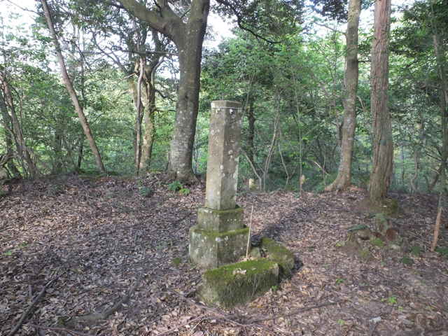 | 玉湯町玉造 16:19 道路脇斜面の上に石柱がある。 |