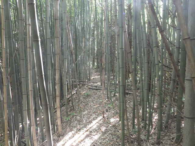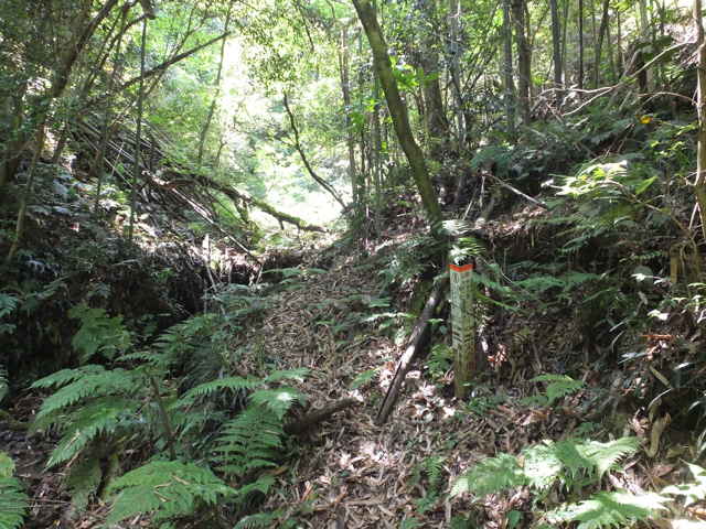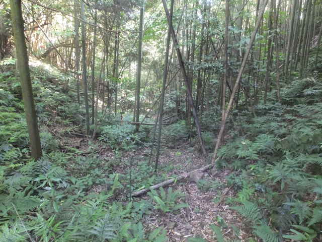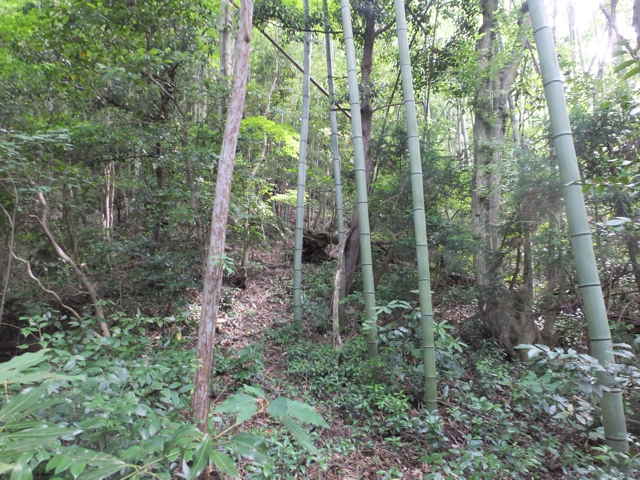 | 長海町 13:04 竹林内に大きな岩がある。 | 13:05 斜面に沿って谷を上がって行く。 | 13:07 巡視路標識がある。径が不明になる。 |