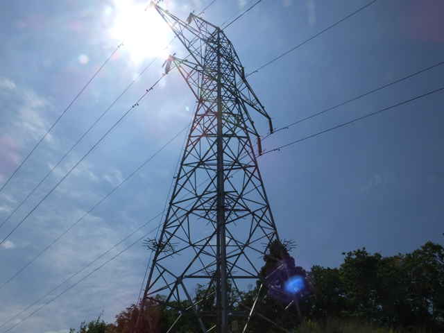 | 15:03 鉄塔No.32へ着いた。 | 長海町 15:03 鉄塔の奥に巡視路が伸びている。 | 15:05 |