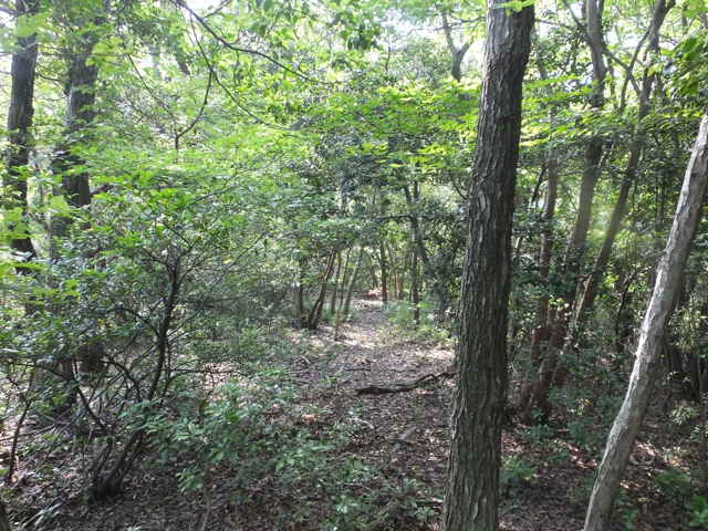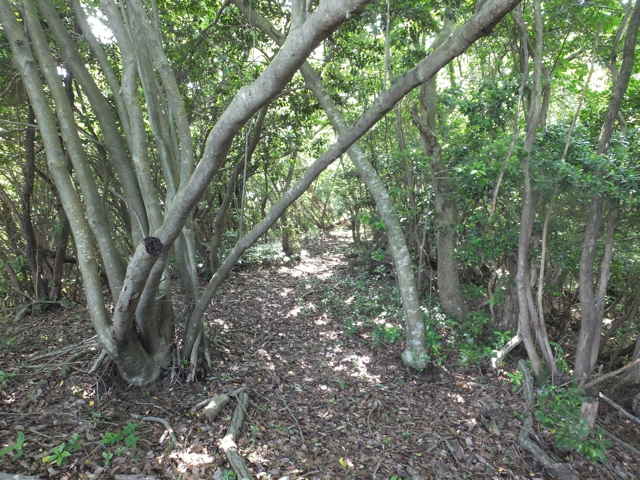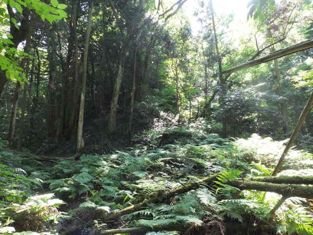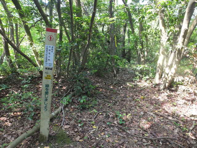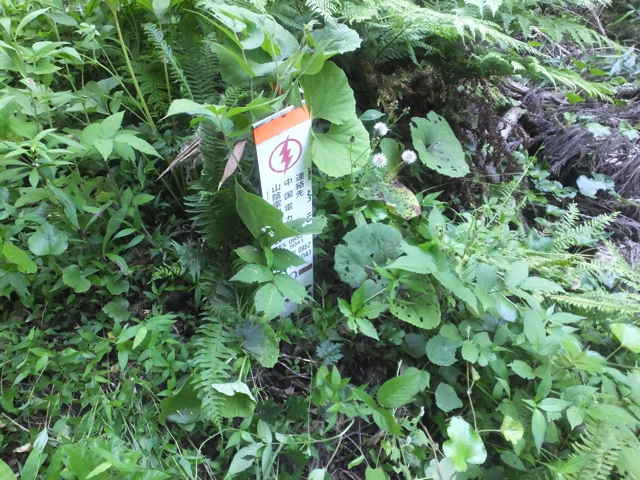 | 長海町の林道馬見谷線を長海神社から少し上がった左側の山へ向かって鉄塔の巡視路があるのを以前からわかっていたので、歩いてみることにしました。 林道脇には標識がありませんが、林内へ入るとすぐ巡視路の標識があり、鉄塔No.34への巡視路を指しています。急斜面を4分ほど上がると、鉄塔No.34があり、忠山のアンテナや手前の鉄塔No.35が見渡すことができます。鉄塔の手前から巡視路は下がっており、急斜面を谷まで下がり、川を渡ります。鉄製の橋の先が川の中に落ちており、どういう状況で橋が架かっていたのか不明です。川を渡りすぐ右に踏み跡があり、その先に巡視路標識がありました。標識から少し進むと、右の斜面に標識があり、山の斜面を上がって行くと、竹林の中に大きな岩があり、その脇を進んでいきます。 斜面に沿って谷を上がって行くと、巡視路標識がありますが、谷には草が多くなり、径らしきものが全く見えなくなってしまいました。谷を上がったり下がったり踏み跡を探すと、標識から少し上がって、谷の左側に踏み跡が上がっていました。また踏み跡がなくなり、谷の中を上がって行くと、谷の中に標識があり安心しました。 5分ほど上がると谷が分岐するので、左の急斜面の谷を上がりました。やがて前方が更に急斜面になってきますが、右へ踏み跡が折れ、さらにつづら折れに上がって行くと、尾根道に上がって、すぐに鉄塔No.33へ上がってきました。鉄塔からは中海方面が見渡すことができ、江島や大根島が見えました。 鉄塔の奥からわずかに踏み跡が見え、また林内へ巡視路が続いています。巡視路はすぐに左へ折れて下がっていき、一旦開けた場所へ出て、中海の大根島などが見渡せました。ここから急斜面を下りて、また林内へ入り巡視路標識を過ぎて2分ほどで左折し、シダの多い径を進みます。 5分ほど巡視路を下がると、標識があり、右折し、湿地を行くと川を渡るようになります。川を渡ったところで、シダの中に踏み跡は見えなくなってしまいました。谷は分かれており、方向がわからなくなりましたが、左の尾根筋に踏み跡が上がっているように見えるので、向かってみることにしました。(本当は、右の尾根に巡視路がありました。) 急斜面の尾根筋にはなんとなく踏み跡があり、15分ほど上がるとピークにつきました。ピークには壊れた石造りの祠のようなものがありました。何かが祀られていたのでしょう。ここから尾根を10分ほど進むと、巡視路の標識があり、その右に巡視路が下がっていました。どこから上がってきているのか、確かめようと下がってみました。下がったところは、先程急斜面の尾根筋へ向かった谷で、右の尾根筋に巡視路があったようです。 再度、下りてきた尾根筋を上に向かって上がりました。急な長い階段を上がり、12分ほどで先程の尾根の標識へ出会いました。ここから1分ほどで、鉄塔No.32へつきました。 鉄塔の奥から巡視路は続いており、苧山の頂上の手前で峠を越えて、下って行きました。この下りの斜面の途中に右へ向かうテープが結んであり、先を確かめようとしましたが、藪の中になるのでやめました。斜面を下がると、すぐに鉄塔No.31がありました。 鉄塔の奥から踏み跡が下がっていますが、草が生い茂って、踏み跡も見えず藪状態です。藪を抜けると、伐採後の開けた斜面で、草やカラスザンショウやタラノキの幼木が多く、下手に触ると痛い目にあいます。なんとか斜面を下がって谷へ下りて行くと、草むらに巡視路の標識がありました。谷沿いに林内へ入ると踏み跡があり、標識からは斜面の細い径を進んでいくと、溜池跡があり、その堤塘が巡視路になっていました。密生した竹林の間を抜けると、開けた場所に標識があり、一段上に上がると柿畑に出てきました。 柿畑の中を抜け、作業道から麓へ下がると市道へ出てきました。山を振り返って見ると、山の端に鉄塔があり、調べると鉄塔No.30でした。柿畑からまっすぐ下りてしまったので、最後の鉄塔へ行く径を通り過ぎてしまったようです。 鉄塔巡視路は何箇所も歩いていますが、その中でも最も径がわかりにくい巡視路だと思います。特にNo.33へ向かう谷沿いの径や、No.31から下りる斜面は全く径がないので、迷ってしまったのではないかと不安になります。 |