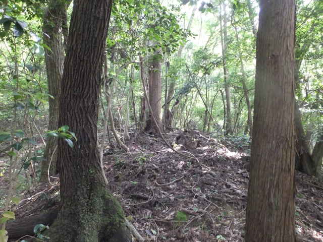 枕木町 15:27 谷へ下りて、谷沿いを下がる。 | 15:28 林内へ入ると踏み跡が見える。 |