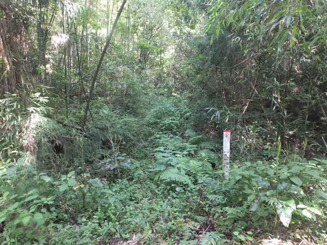 | 新庄町 11:41 右に巡視路の標識がある。 | 11:42 背の高い草に覆われ径は見えない。 |