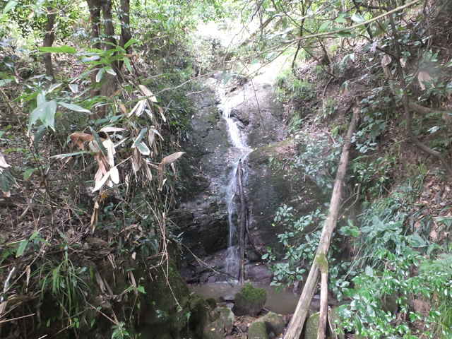| 昭和22年発行の旧版地形図を見ると八雲町熊野の宮内から蛇山へ向かって谷を入って、萱野までの山越えをする径が描かれているので、確認しようと出かけました。 熊野大社から南へ進むと、上の宮跡の手前に橋があり、蛇山へ向かって谷を入っていく道があります。少し入って南へ分岐する道の角に民家があり、その前から歩いてみました。 さらに谷を上がって行くと、左の谷の奥に民家があり、その前の田んぼの脇から作業道が続いています。やがて作業道は川沿いに進み、山の中へ入って行きます。薄暗い林内のため、草なども少なく、歩くのにはあまり支障はありませんでした。 やがて橋を渡って進むと、左手の斜面を上がっていく径が見えます。これは、地理院地図の1960年代の空中写真に写っている径と思われます(帰り道で市道を下がるときに、三角点近くで、出口と思われる径がありました。)。橋を過ぎると、だんだん径は荒れた感じとなり、倒木が折り重なった場所もありました。倒木を越えていくと、砂防堰堤があり、広かった作業道はここで終わりのようです。 堰堤を越えると、小木が生え荒れていますが、川へ向かい、小さな流れの川を渡ります。ここで谷が左右に分かれ、川も分岐しています。右手の谷沿いに踏み跡があるようにも見えますが、谷に挟まれた正面の急斜面の尾根に向かいます。 急斜面には踏み跡は見えませんが、上に向かってまっすぐ20分ほど急斜面を上がると、緩やかな尾根径になりました。尾根径は、最近では歩く人もいないと思われ、小木が生え、枝が伸び、切り払わないと、通れないような場所もありました。久々の藪こぎの尾根歩きです。 このルートのピークへ上がった平坦な場所に、大きな溝があり、またゴミが散乱しており、以前はこの場所に生活の場があったのかもしれません。ここから旧道は水田脇を西へ向かったようですが、木々の先に見える谷の水田跡は原野となって藪の状態で、通れるようには見えませんでした。少し先へ進んでみても、状況は変わらず、溝の場所まで引き返し、ここから谷へ下ってみました。急斜面を下りると、一度平坦になり、さらに下りると谷につきました。 谷から原野の方へ進んでみましたが、やはり通れるような状態ではありませんでした。ここから北へ向かうと鉄塔巡視路に出会うはずなので、植林地の端を北へ進むと、やはり先日、松江知井宮線鉄塔No.23へ向かった巡視路に出会い、民家の前に出てきました。 ここからは、市道を通って岩室から県道大東東出雲線へ下りて出発地まで歩いて帰り ました。 |