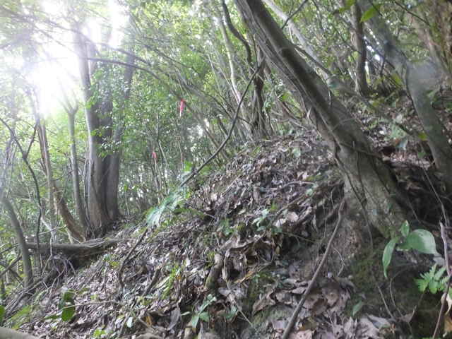 | 東持田町 12:37 | 左の急斜面を上がる。 | 12:51 急斜面にロープを張った。 |