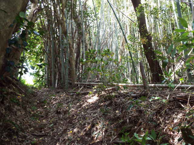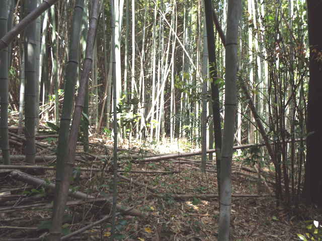 ピークの手前で右の竹藪へ入る。 |