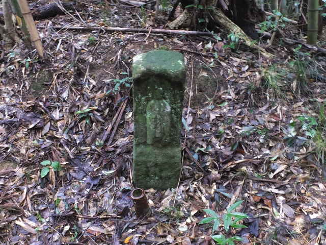 | 林の中を進む。 | 峠付近の地蔵、無縁法(界?)佛。 | 秋鹿町本谷へ抜ける。 |