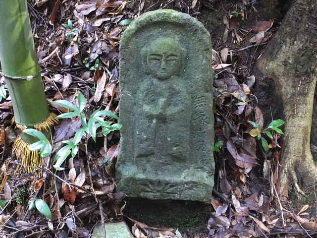 | 扇谷池を過ぎたあたりの最初の町石。 | 舗装道路は終わり、細い山道になる。 | 峠の手前に扇谷地蔵尊がある。 |